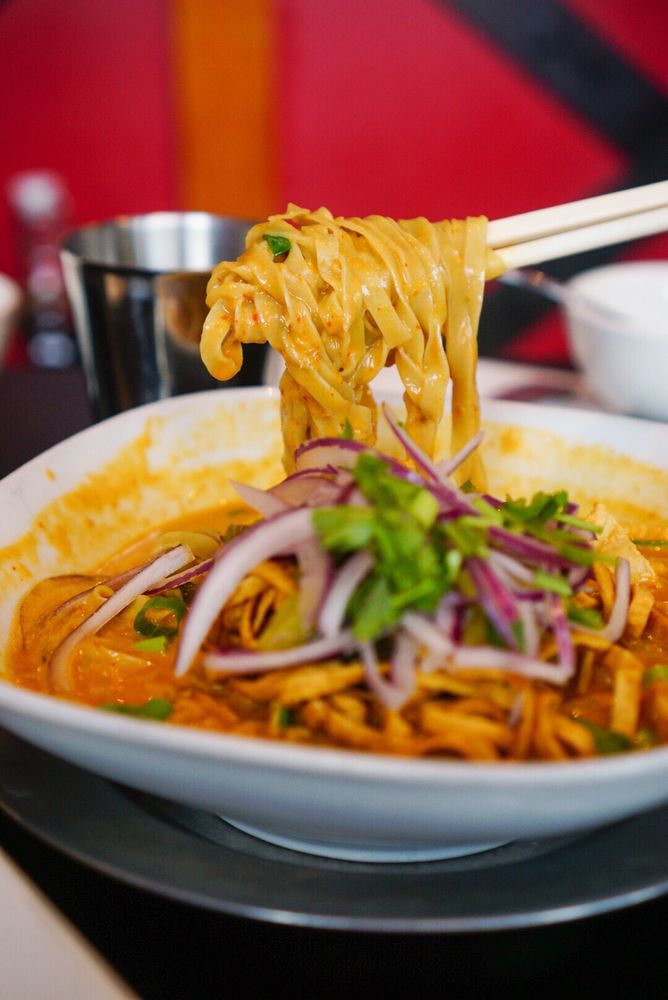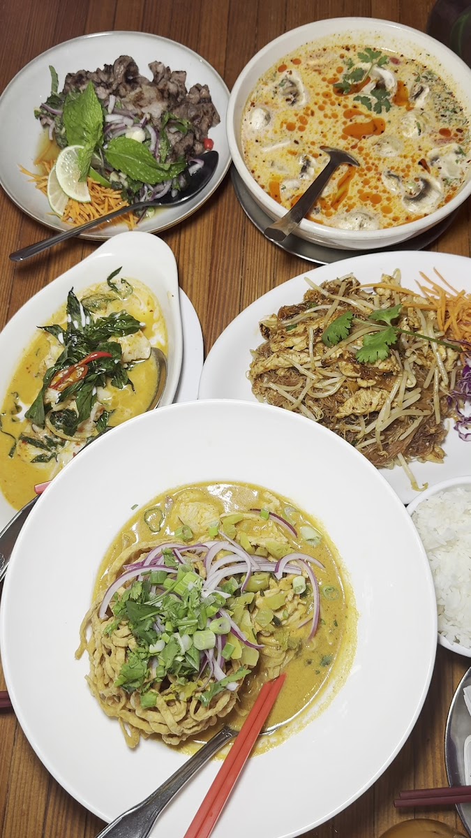 Dining here feels like stepping into a kitchen where traditional Isan influences take center stage, with a menu that highlights noodle bowls like Kao Soi and Ba Mee Hang Muu Toon, alongside vibrant salads and rich curries. The balance between robust flavors and fresh vegetables is evident in dishes such as Kanom Jeen Nam Prik and Yum Larb Isan, which highlight the thoughtful layering of heat, sourness, and herbs that characterize this cuisine.