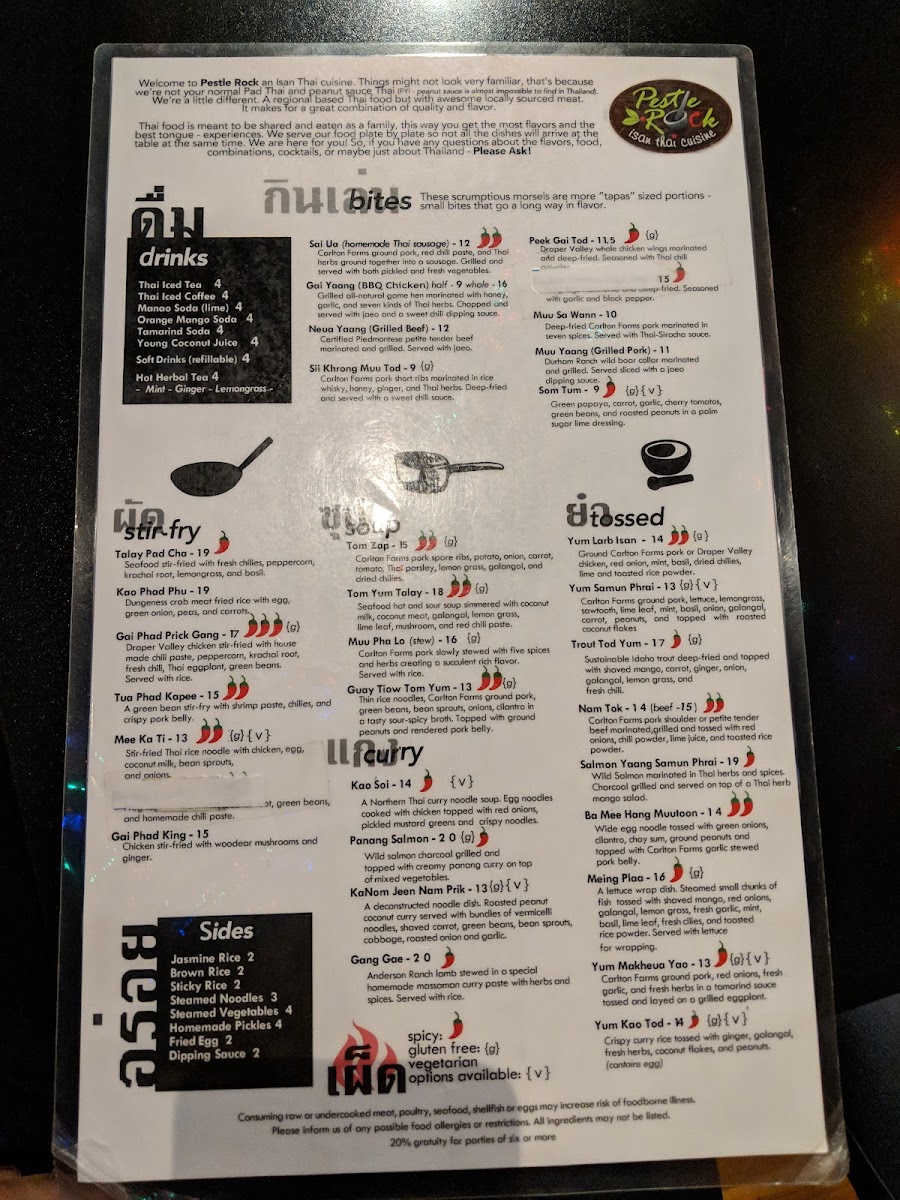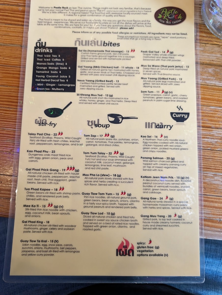 Pestle Rock Menu